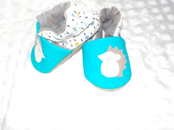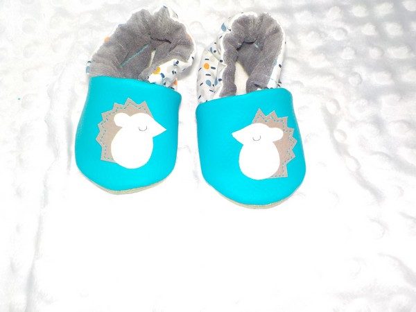 Chaussons souple bébé-hérisson – Taille 0-6 mois-fait main
