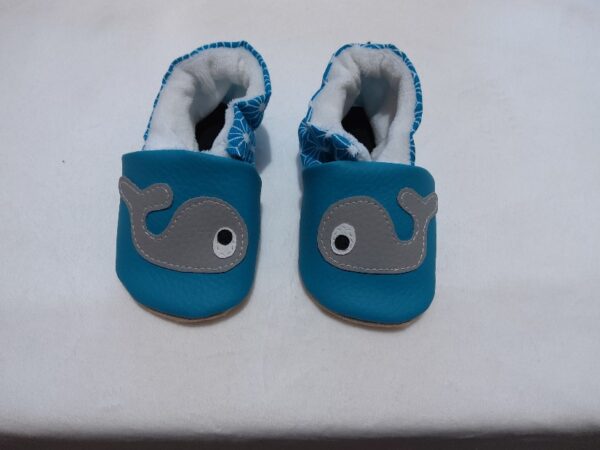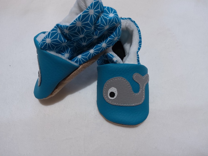 Chaussons souple pour bébés , enfants et ado.Des chaussons originaux fait main en Bretagne , made in France . Les chaussons souple sont idéale pour les premier pas de bébé . Les chaussons sont élastiqué à la cheville pour un bon maintien du pied , l’intérieur est doublé en minky tout doux . Le chausson est fait en simili cuir , pas de matière animal chez lololinette certain diront même qu’ils sont vegan ! Les chaussons sont lavable en machine à 30°.