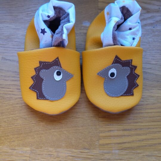 Chaussons souple pour bébés , enfants et ado.Des chaussons originaux fait main en Bretagne , made in France . Les chaussons souple sont idéale pour les premier pas de bébé . Les chaussons sont élastiqué à la cheville pour un bon maintien du pied , l’intérieur est doublé en minky tout doux . Le chausson est fait en simili cuir , pas de matière animal chez lololinette certain diront même qu’ils sont vegan ! Les chaussons sont lavable en machine à 30°.