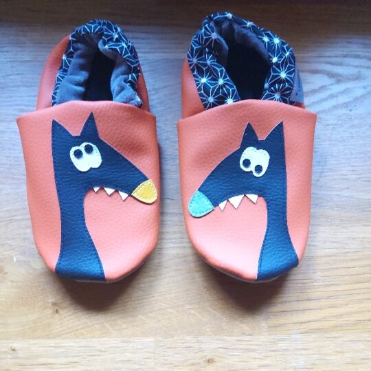 Chaussons souple enfants- loups- taille-27 et 31-fait main