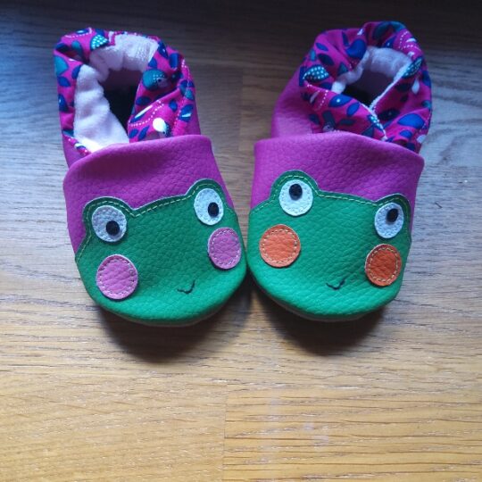 Chaussons souple pour bébés , enfants et ado.Des chaussons originaux fait main en Bretagne , made in France . Les chaussons souple sont idéale pour les premier pas de bébé . Les chaussons sont élastiqué à la cheville pour un bon maintien du pied , l’intérieur est doublé en minky tout doux . Le chausson est fait en simili cuir , pas de matière animal chez lololinette certain diront même  qu’ils sont vegan ! Les chaussons sont lavable en machine à 30°.