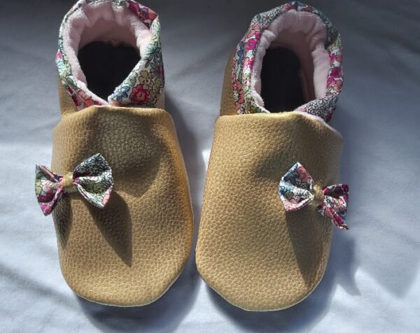 Chaussons souple pour bébés , enfants et ado.Des chaussons originaux fait main en Bretagne , made in France . Les chaussons souple sont idéale pour les premier pas de bébé . Les chaussons sont élastiqué à la cheville pour un bon maintien du pied , l’intérieur est doublé en minky tout doux . Le chausson est fait en simili cuir , pas de matière animal chez lololinette certain diront même qu’ils sont vegan ! Les chaussons sont lavable en machine à 30°.
