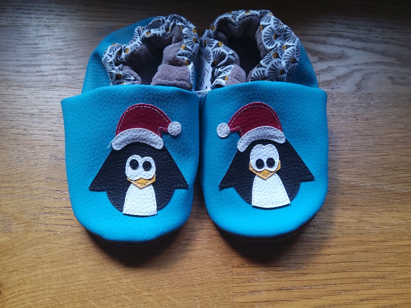 Chaussons souple pingouins- Taille 24-fait main