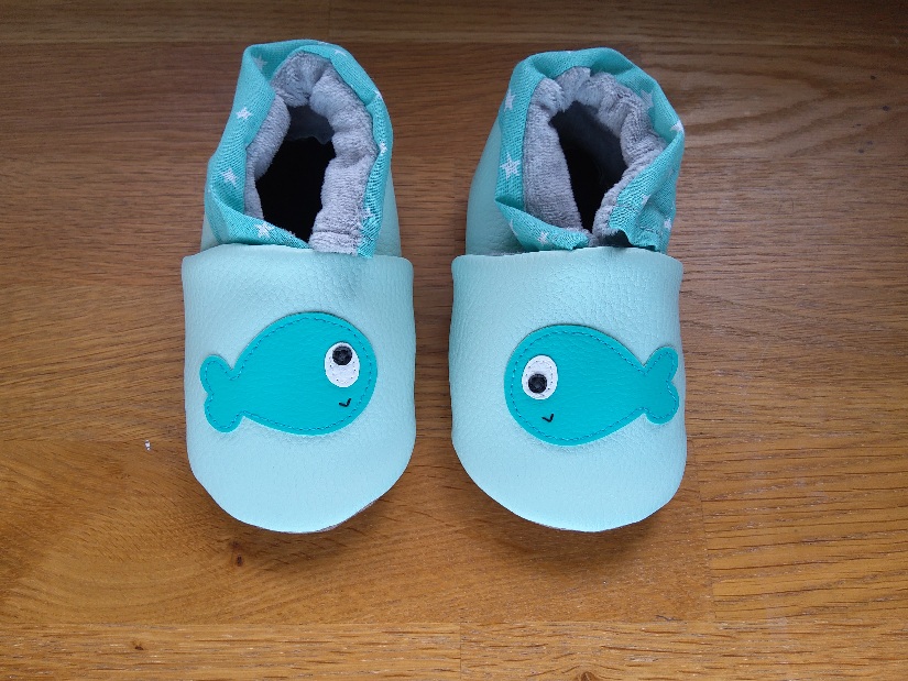 Chaussons souple taille 20 , simili cuir bleu et tissus , intérieur doublé , semelle doublé.